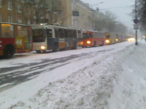 Легкий снежок начался еще накануне, а уже ранним утром отправляющиеся на работу жители города могли испытать себя в качестве первопроходцев – сугробы выше колена возле подъездов, целинно-белые тротуары и такие же дороги. Выехать со двора было настолько непросто, что многие автомобилисты, вняв совету ГИБДД, пересели на общественный транспорт, который с утра ходил с некоторыми перебоями.Пешеходам пришлось нелегко, водителям - тоже. ФОТО: Маргарита ИвановаНо уже позже «Городской транспорт» отрапортовал – на линию выведены дополнительные троллейбусы. Тем не менее, Петрозаводск превратился в одну гигантскую пробку. Ближе к 10 часам утра возле мэрии собралась целая вереница троллейбусов, остановившихся без движения и еще больше усугубивших дорожные неприятности.Троллейбусы встали. ФОТО: Маргарита ИвановаПока горожане раскупали в магазинах лопаты, чтобы откопать свои авто, и подбирали незнакомцев на остановках, чтобы просто так, от доброго сердца, подвести, на помощь «ТехРенту», который занимается уборкой улиц по контракту, призвали и другие организации: «Дорстройсервис» и «Комбинат благоустройства», ГУП РК «Мост», «Чистый город» и «Карелстроймеханизация». В городе работало около 30 единиц техники, почти 600 дворников. Правда, до окраин люди с лопатами и машины с ковшами добрались ближе к вечеру.