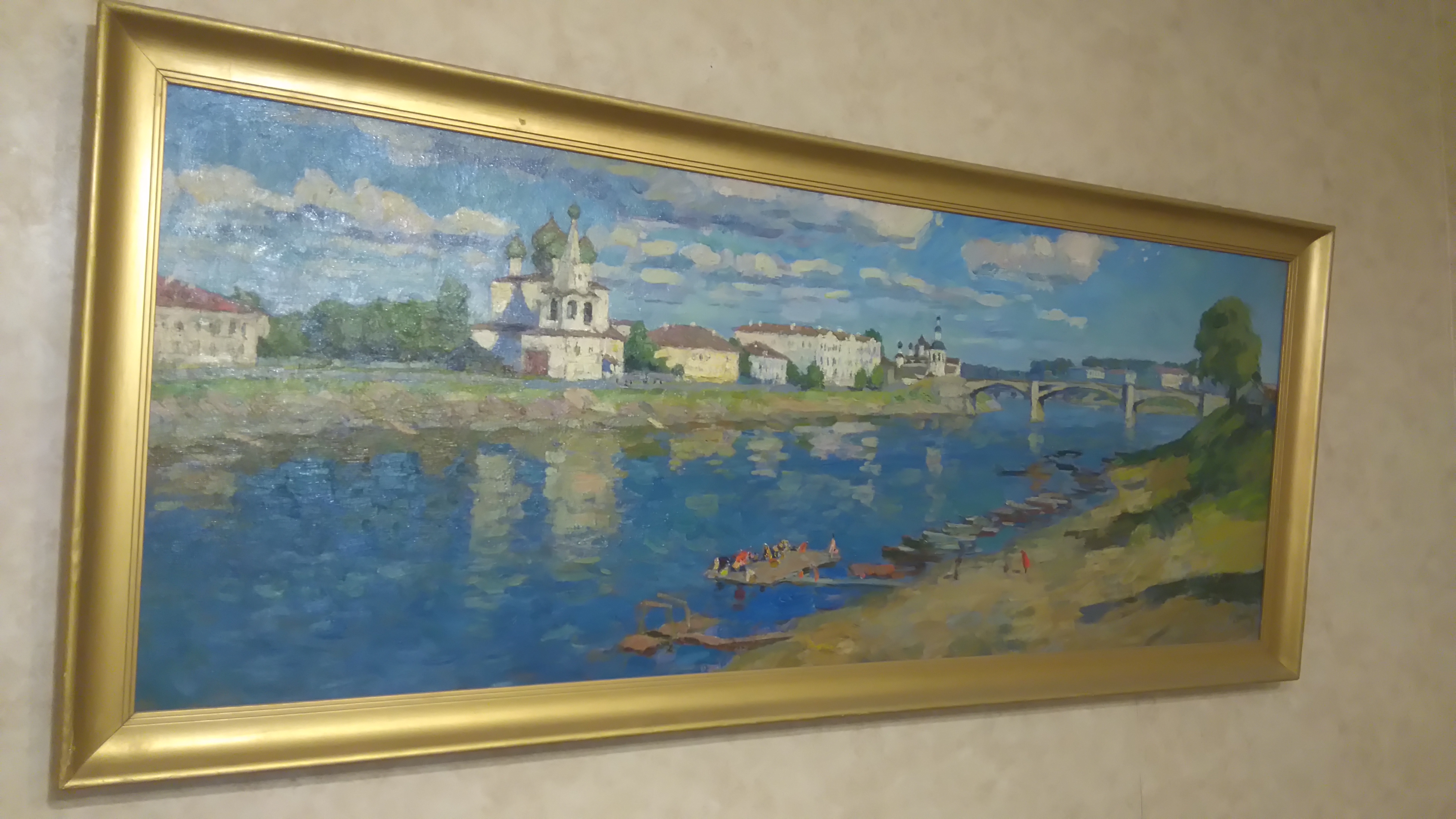 А вот местная набережная от петрозаводской отличается разительно. Никакого гранита, никакой суровости – пологие спуски, травка, умиление. Поймав хороший вид для фото, мы чуть позже обнаружили место, с которого фотографировали, на картине начала ХХ века – она висит в Музее забытых вещей.