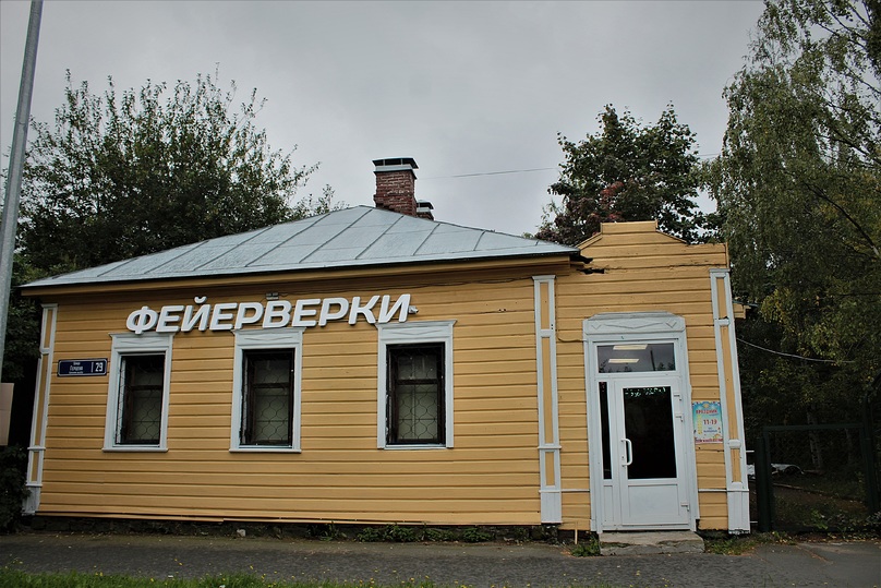 Этот дом был построен в 1925 году. Жили в нем несколько семей, и, по рассказам горожан, он оставался жилым еще в 80-е годы прошлого столетия. Потом в здании располагались самые разные организации, а сейчас здесь находится магазин фейерверков. Сегодня дом уже нежилой, у него один собственник, но самих хозяев мы не видели, а только переписывались с ними, поскольку они живут за границей.