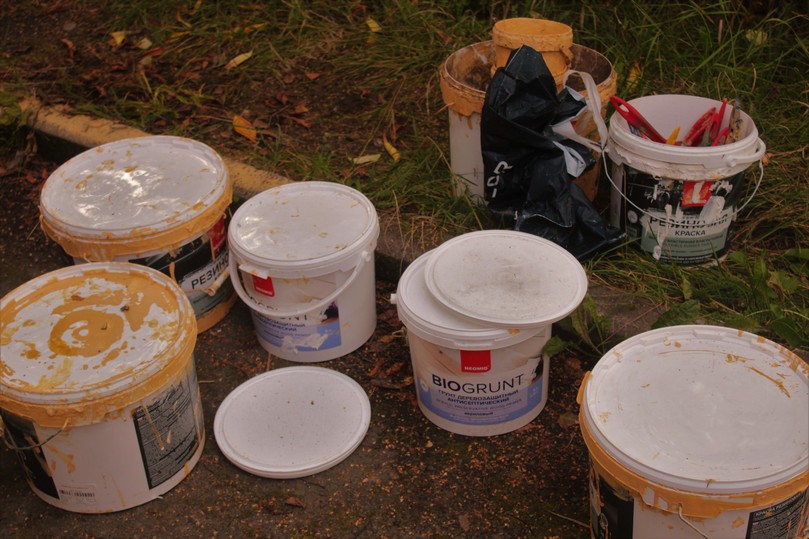 Краска, которая ушла на окрашивание стен дома. Фото Аль-Риши Немич
