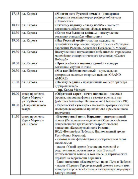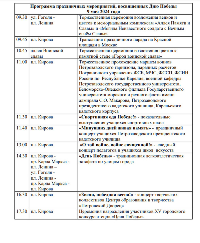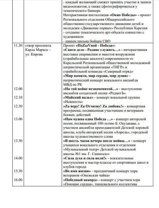 Управление культуры Петрозаводска разместило полную программу 9 мая.
