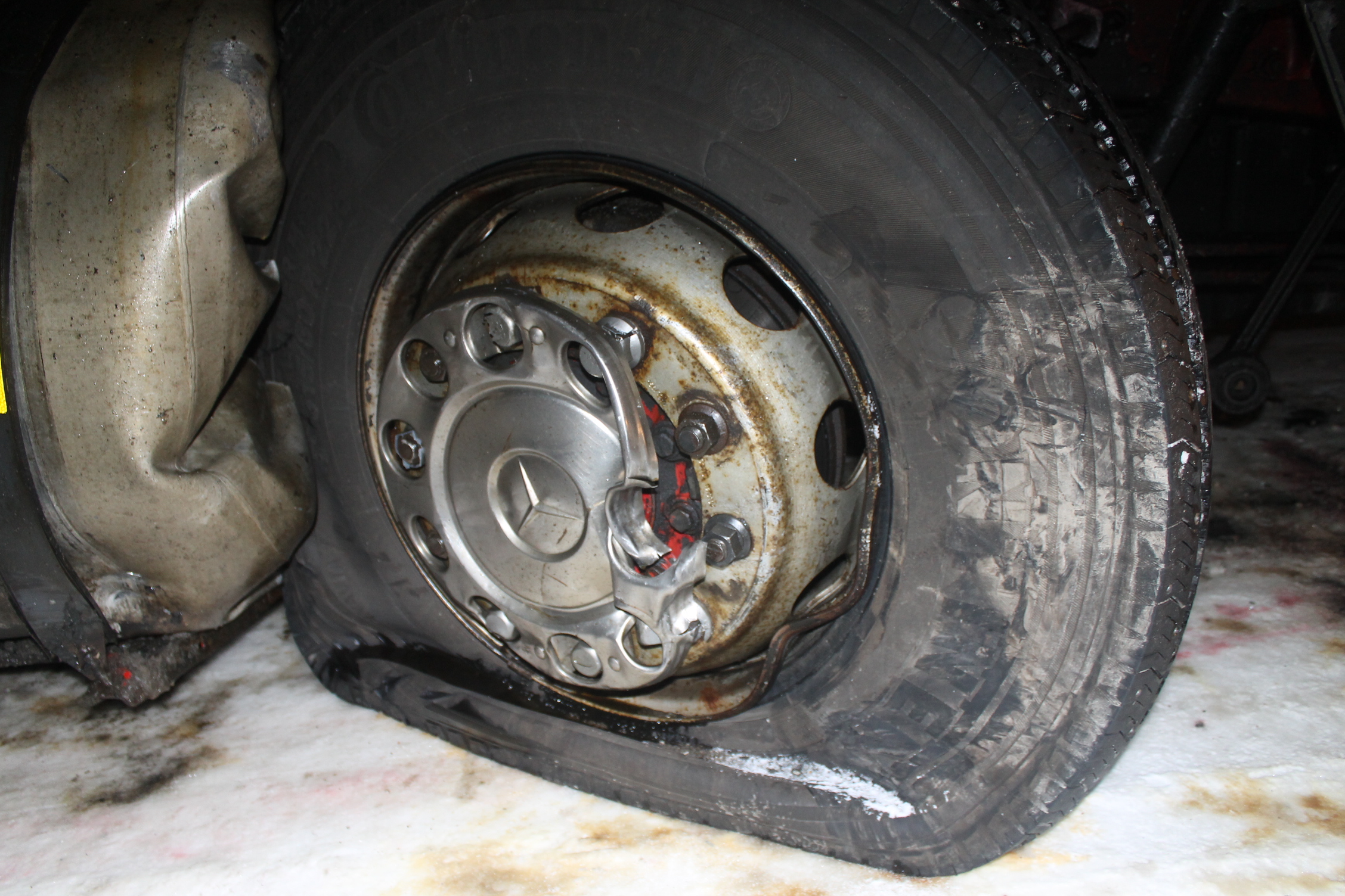 Эксперт утверждает, что колесо продолжало вращаться. Как оно, буквально вбитое в топливный бак, могло вращаться, да еще и шипы сохранить – загадка.