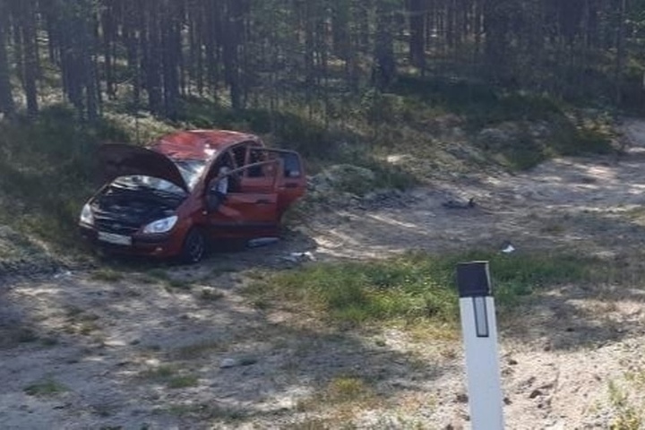 В 11 утра на 605 км автодороги А-119 Вологда – Медвежьегорск 36-летняя женщина-водитель из Санкт-Петербурга на иномарке допустила съезд с дороги, транспортное средство (автомобиль «Хендай Гетц) опрокинулось.