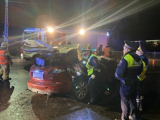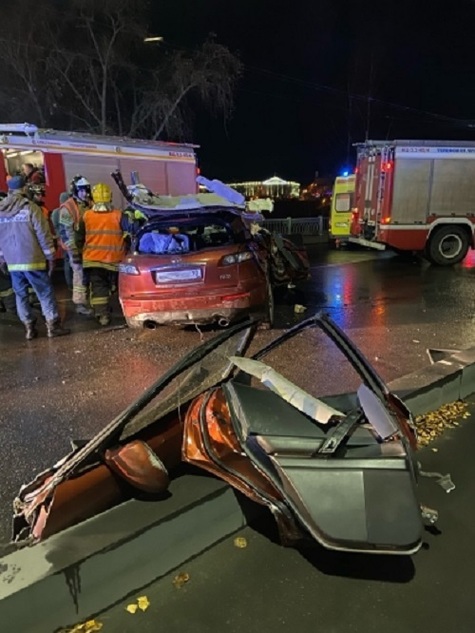 По информации МЧС, Infiniti врезался в «препятствие». К ликвидации аварии привлекались 16 человек и пять единиц техники пожарно-спасательных подразделения города. «DtpPtz» пишет, что водителя и одного пассажира увезли в БСМП.