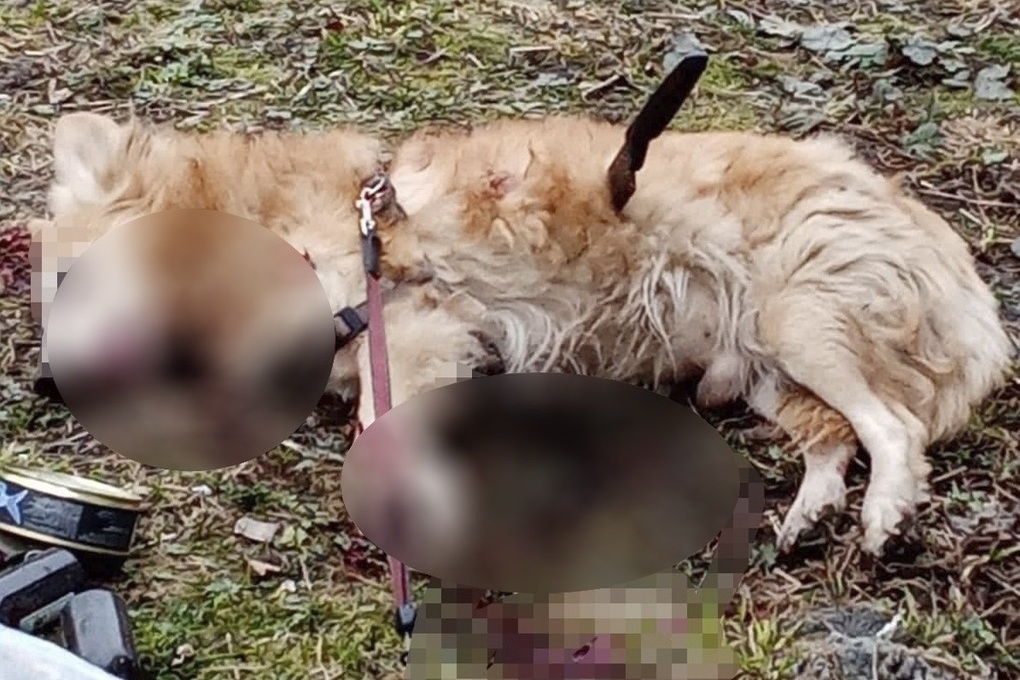 Там сообщается, что тело животного лежало возле электрощитовой. Небольшой светло-рыжий пес точно был домашним – на нем шлейка, к которой пристегнут красный поводок. Животное убили кухонным ножом, нож так и остался торчать из раны. Нашедшие его горожане вызвали полицию: сотрудники и эксперты изучили место преступления, забрали тело пса и орудие убийства.