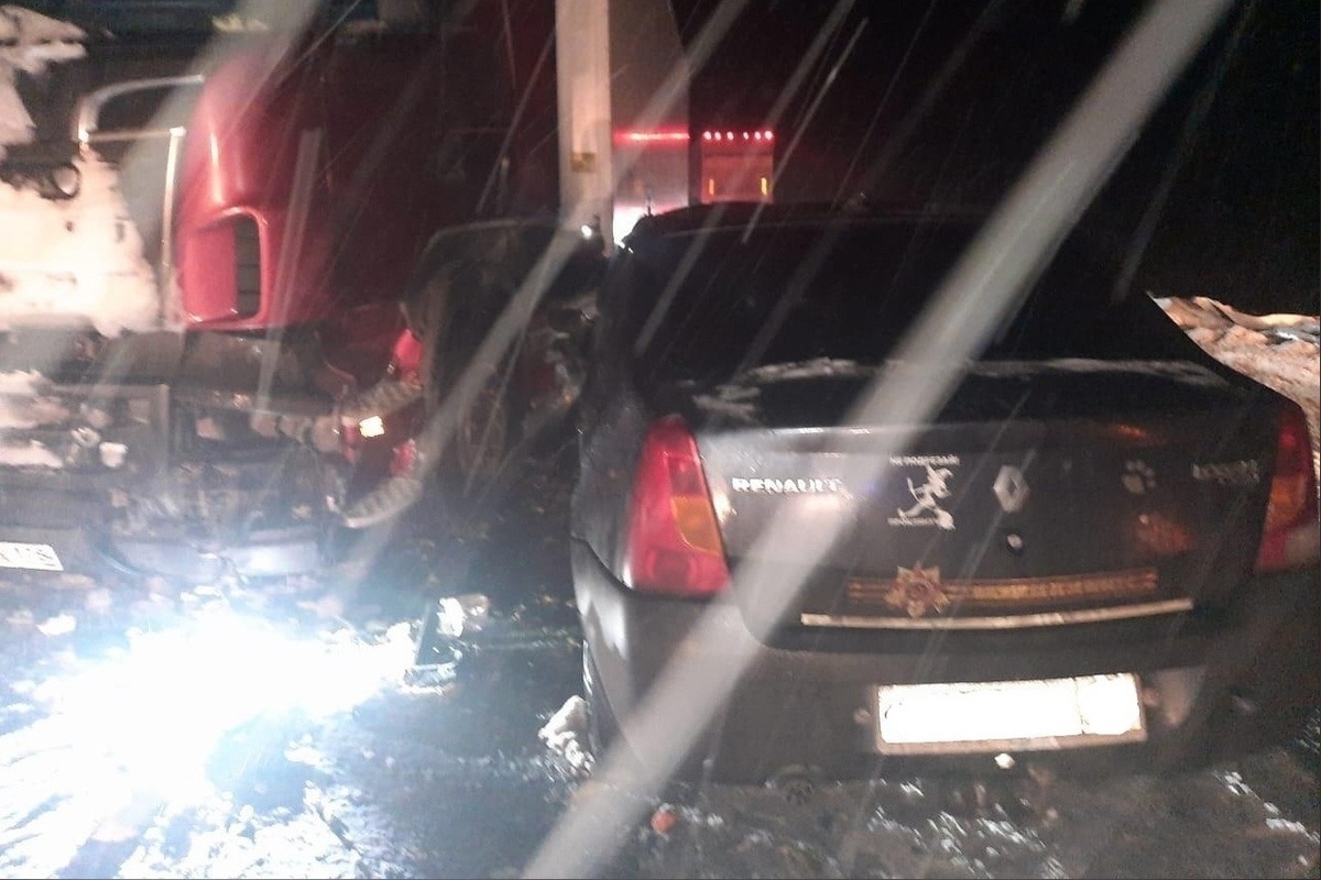 Спустя пять минут 30-летний водитель за рулем Renault Logan пытался не врезаться в стоящие после ДТП грузовики, но допустил занос иномарки, и произошло встречное столкновение с грузовиком Scania под управлением 61-летнего водителя.