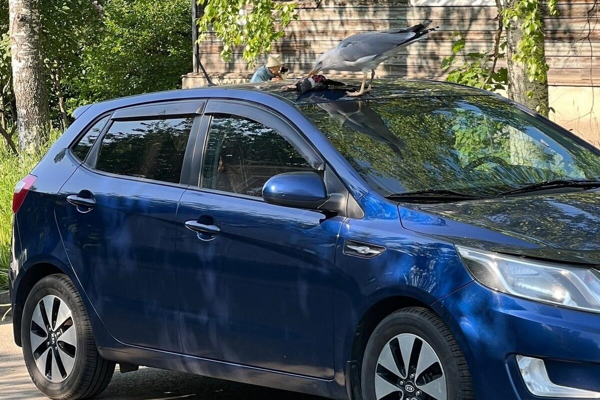 Чайка заклевала голубя на крыше машины в Петрозаводске