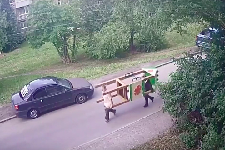 Похитители детской площадки в Петрозаводске попали в объектив камеры видеонаблюдения компании «Ситилинк». Видео кражи опубликовала группа муниципального казенного учреждения «Служба заказчика».