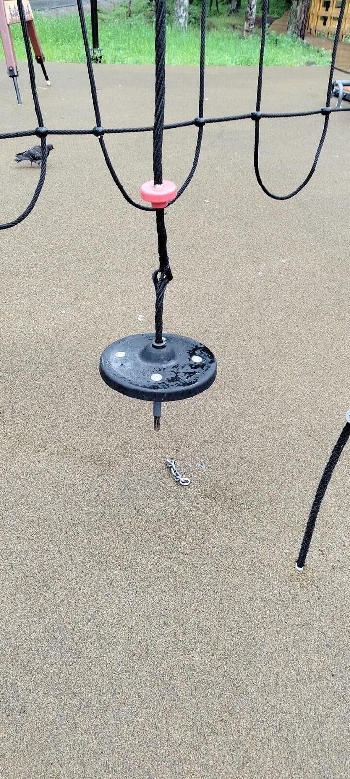 Вандалы отцепили от креплений канаты, оторвали железные цепи, сломали на две части металлические качели, еще часть оборудования бесследно исчезла.