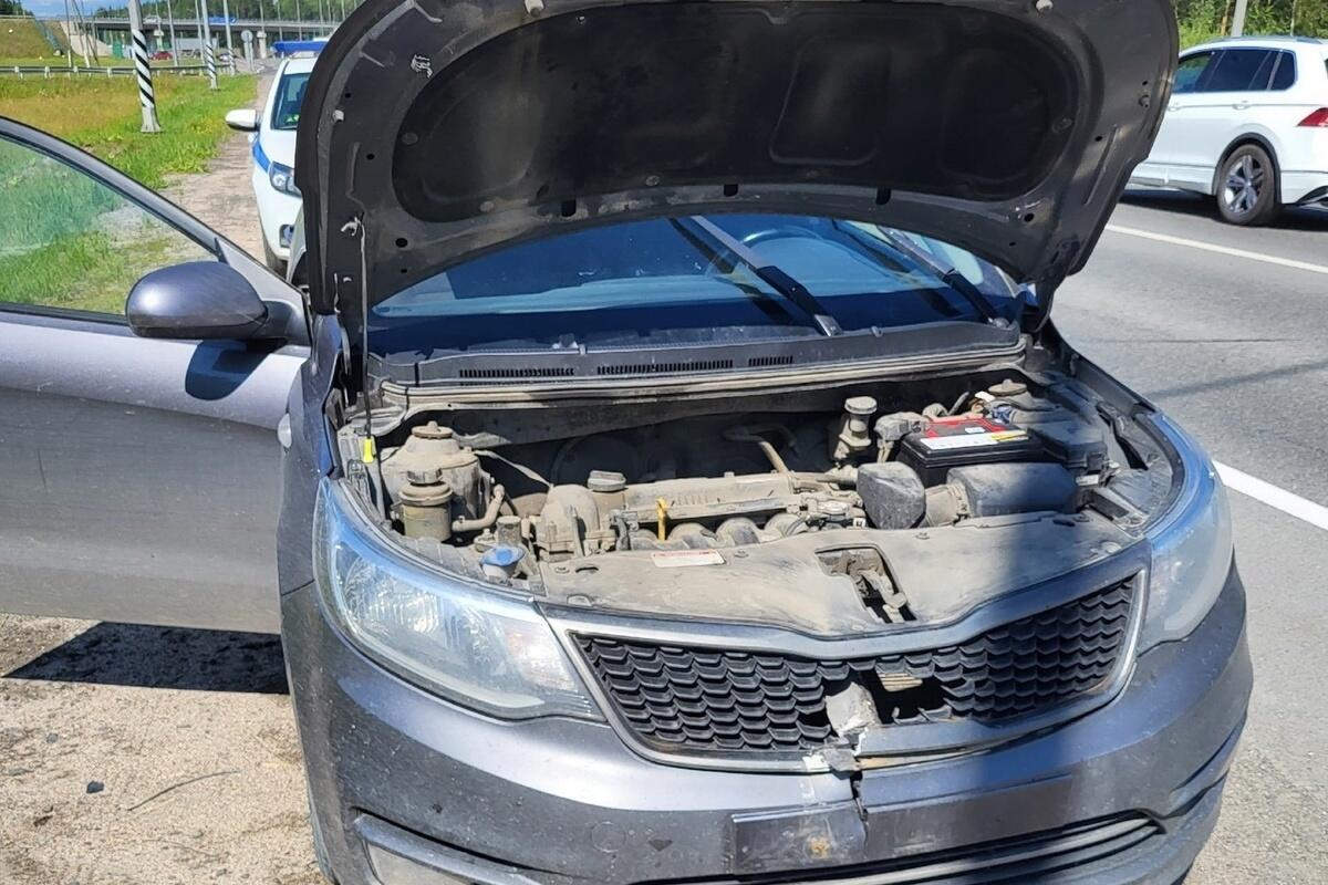 Камень пробил передний бампер, повредил радиатор и другие детали легковушки.