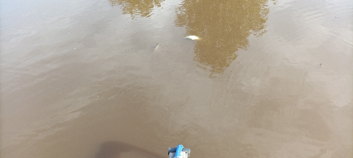 Плотва, щука, окунь и другие речные рыбы выплывают из глубины, высунув носы из воды. Очевидец сообщил, что некоторые из рыб всплывают мертвыми.