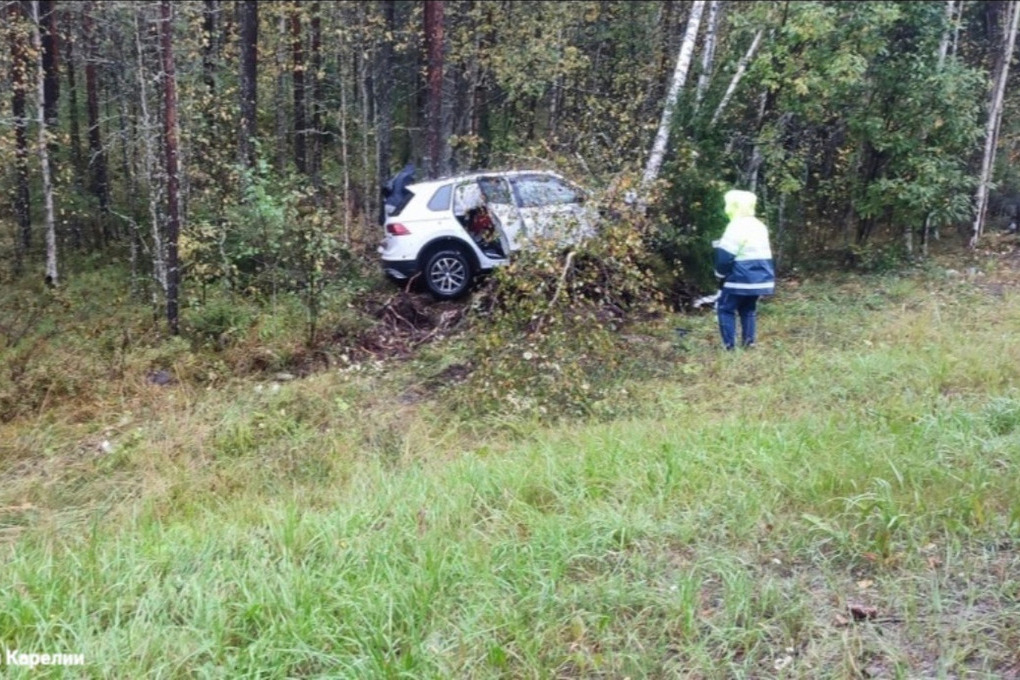 Вскоре сотрудники ГИБДД Карелии рассказали, что за рулем Volkswagen Tiguan был 62-летний мужчина. Выяснилось, что он не справился управлением из-за дождя. Помощь медиков понадобилась его 61-летней пассажирке
