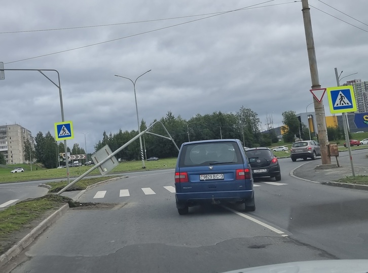 Напомним, что знак пешеходного перехода рухнул прямо на проезжую часть Лесного проспекта.