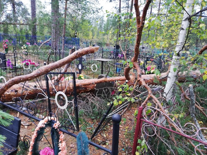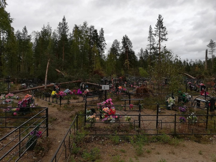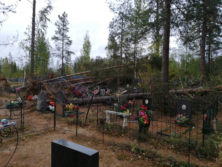 Ураганный ветер разрушил кладбище в райцентре Карелии