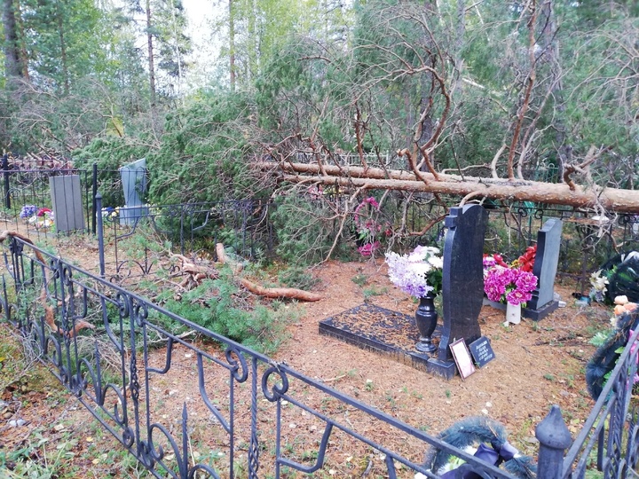 Так, в поселке Ледмозеро Муезерского района штормовой ветер устроил лесоповал на кладбище. Огромные деревья, вырванные с корнями, упали на памятники, повредив оградки и разрушив захоронения.
