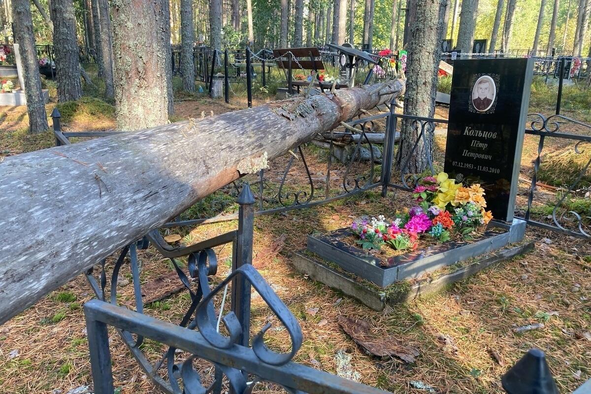 Как сообщили в паблике «Сегежа Online…», местные жители заметили, что на кладбище сухое дерево рухнуло прямо на могилы.