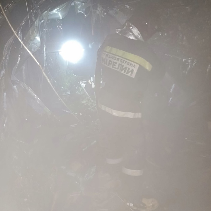 Теплица с дровами сгорела в поселке Карелии