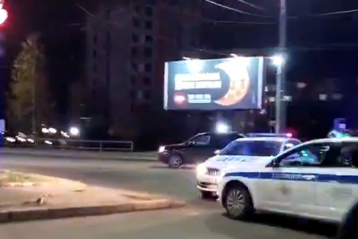 Проезжавший мимо автомобилист запечатлел на видео, как автомобили ГИБДД взяли в кольцо нарушителя.