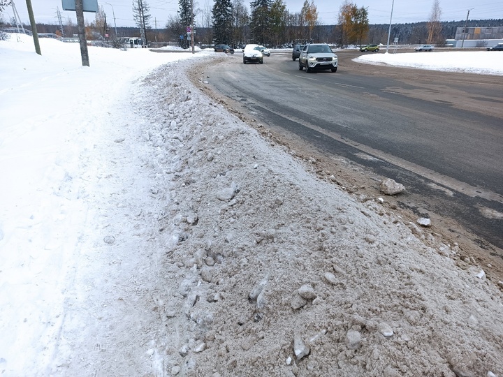 Уборочные машины завалили снегом весь тротуар на Кукковском кольце, из-за чего пешеходам приходится самостоятельно вытаптывать тропу длиной около 500 метров.
