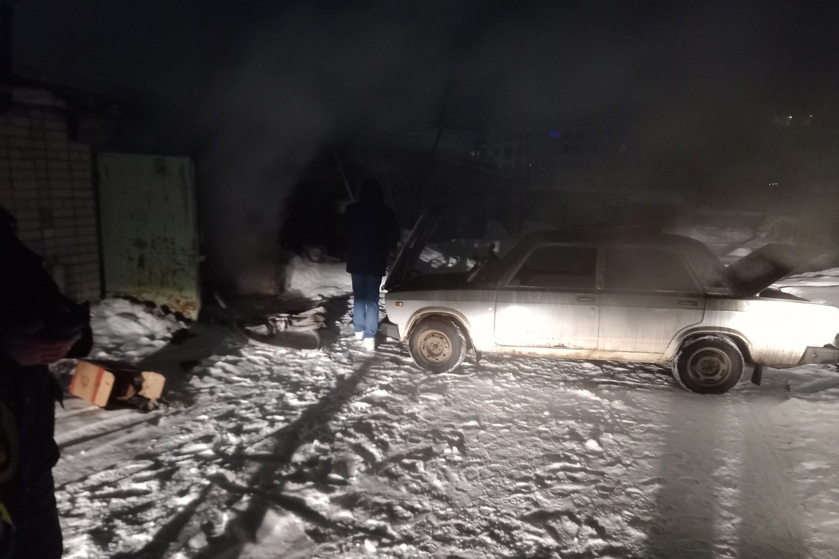 В результате пожара сгорел один гаражный бокс со стоявшим внутри автомобилем ВАЗ. Причины, виновный и ущерб устанавливаются. На пожаре никто не пострадал.
