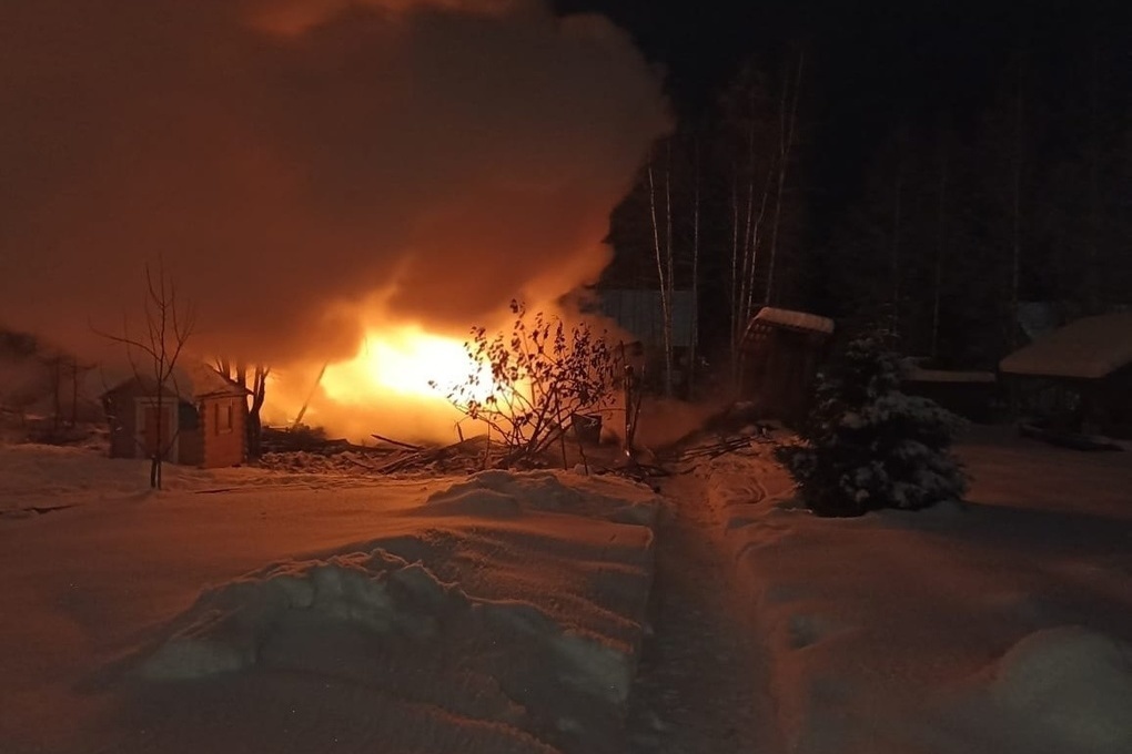 Как сообщили пожарные-спасатели Пряжинского района Карелии, сегодня ночью, 30 декабря в 3.56, в поселке Чална загорелись хозпостройка и два дровяника – огонь до небес.