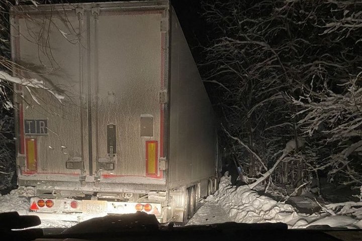 Дальнобойщики вторые сутки замерзают в застрявшей под Петрозаводском фуре