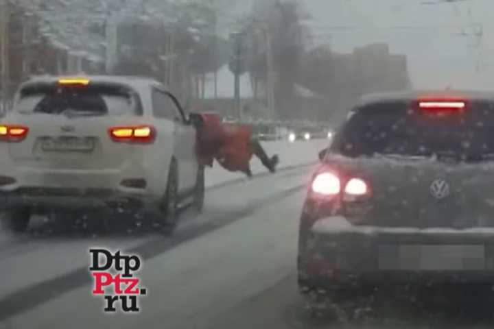 На кадрах видно, что водитель не остановился перед пешеходным переходом, как это сделали автомобилисты в соседнем ряду, и сбил человека.