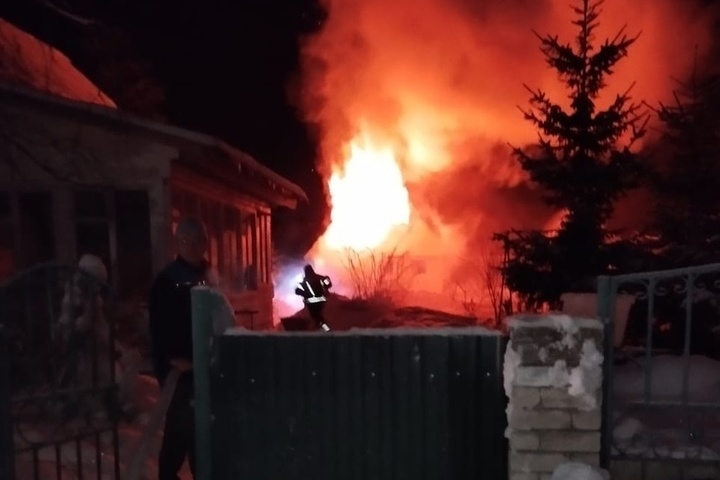 На место происшествия незамедлительно выехали семь пожарных. К моменту приезда спасателей большая часть дома была охвачена огнем.