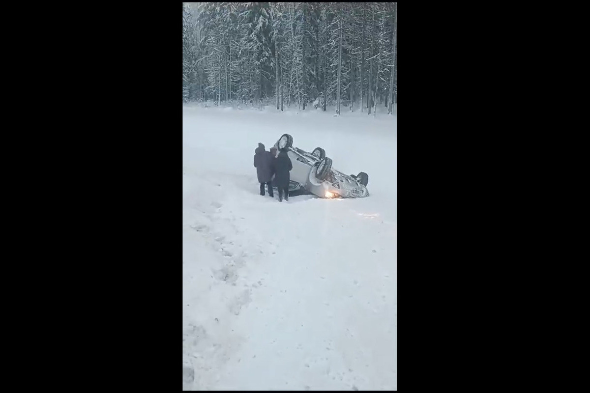 Как сообщили в паблике «Подслушано у водителей Птз и Карелии», 15 января на трассе Кола в Пряжинском районе, вблизи поселка Матросы, автомобиль перевернулся на крышу.