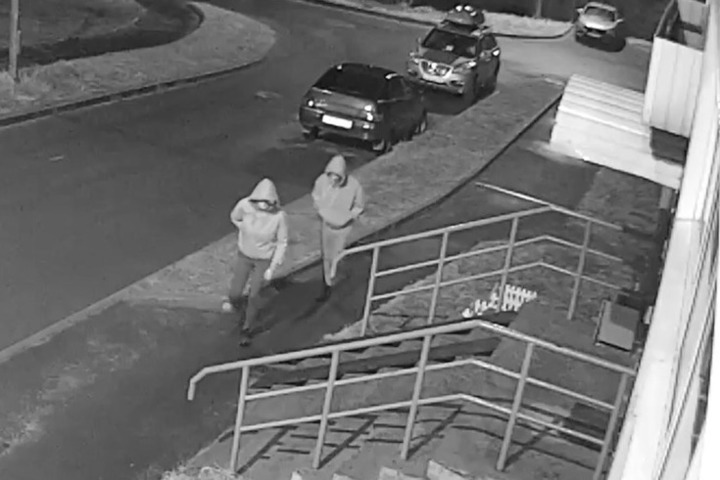 На записи видно, как двое мужчин в светлых толстовках с капюшонами на головах зашли в подъезд и спустя минуту вышли с двумя велосипедами, после чего уехали на них в неизвестном направлении.