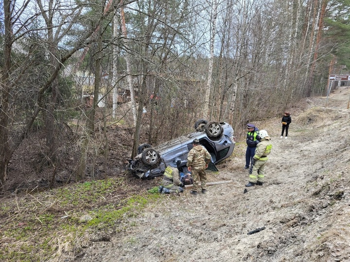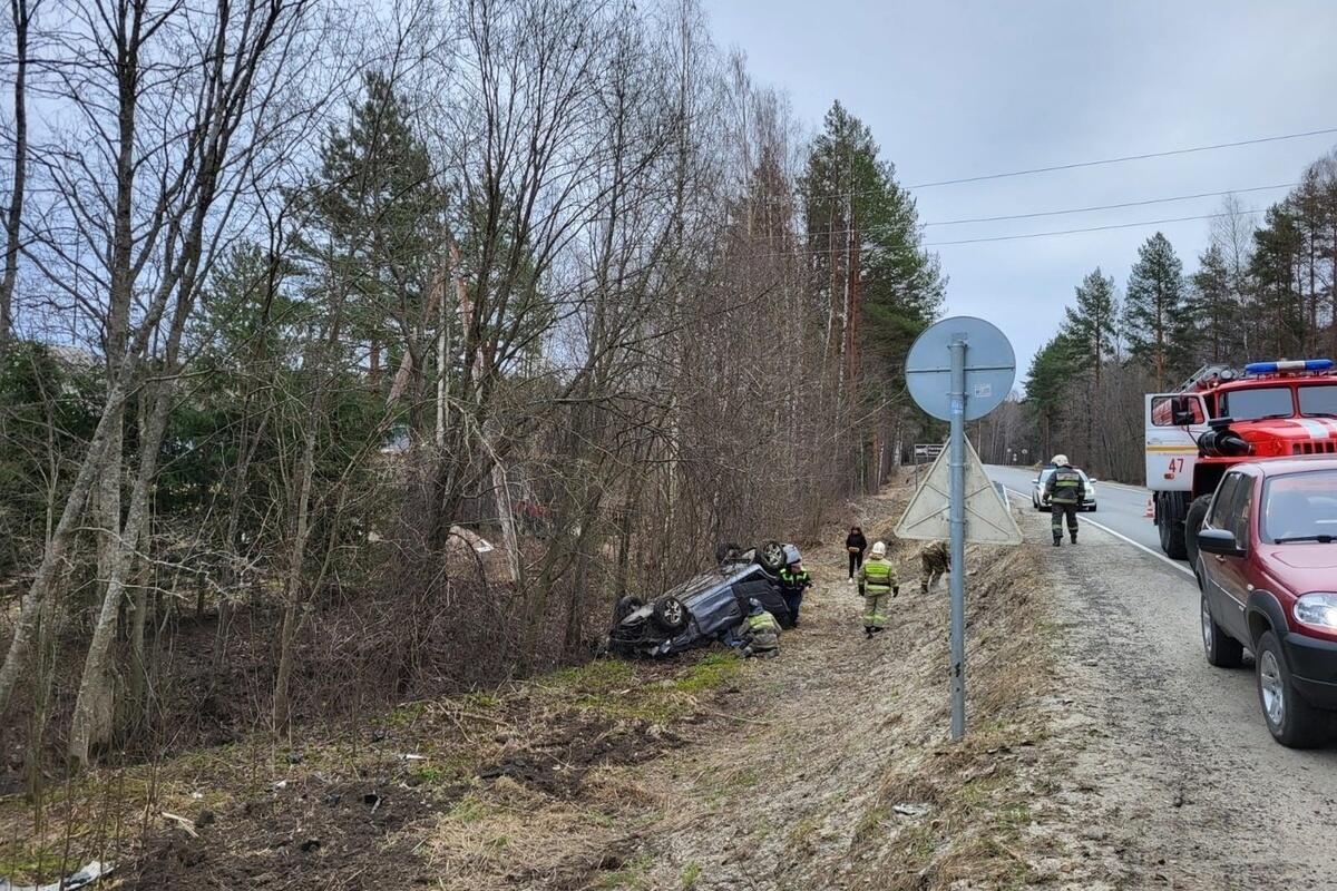 Спасатели показали фото с ДТП в Прионежском районе, где в перевернувшемся автомобили пострадали водитель и пассажирка.