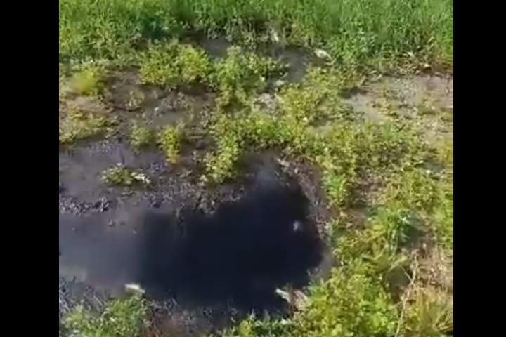 В результате действий таких недобросовестных автомобилистов у эстакады образовалась огромная лужа машинного масла, которая ручьем стекает в лес.