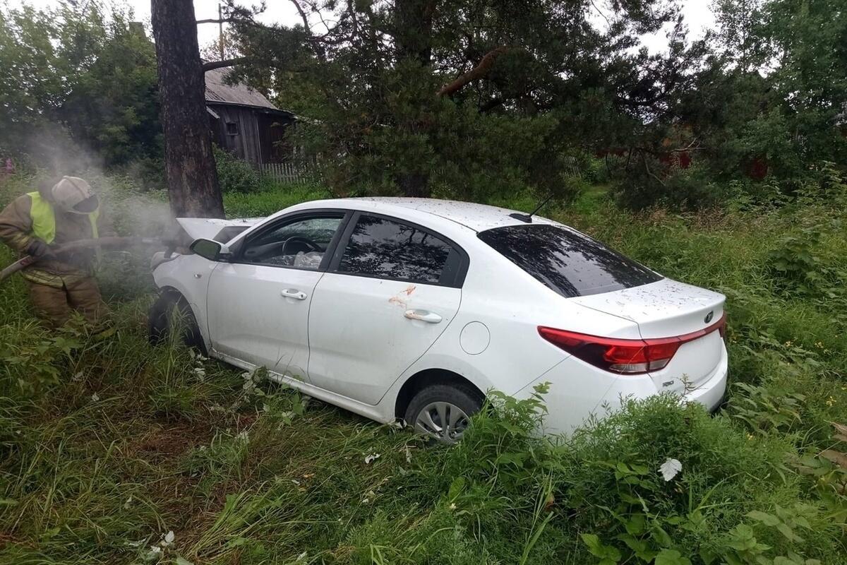 Как сообщили в отряде противопожарной службы по Беломорскому району, 31 июля в 15:08 в поселке Сосновец автомобиль Kia Rio съехал с дороги в кювет и врезался в дерево.