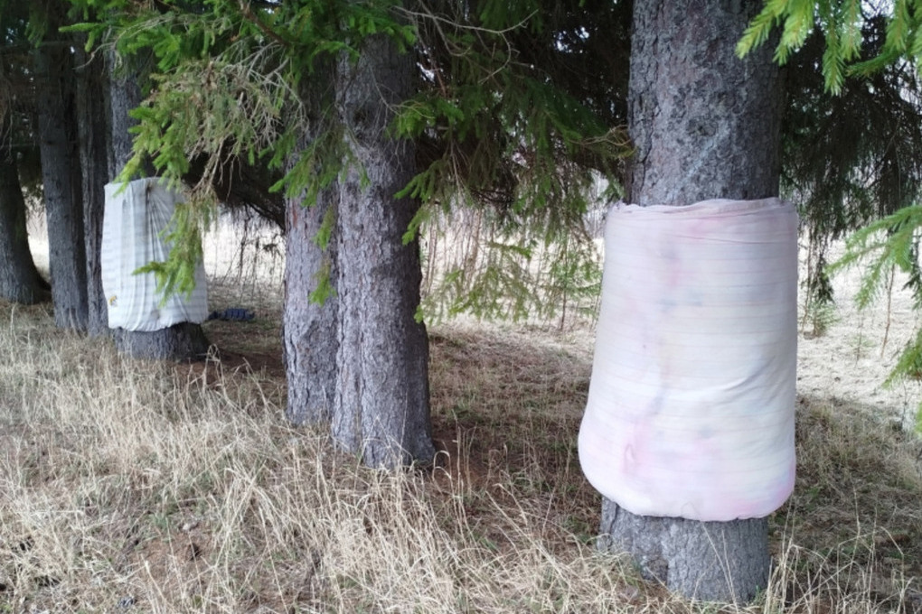 Вандал "украсил" вековые ели старыми матрасами в Питкярантском районе