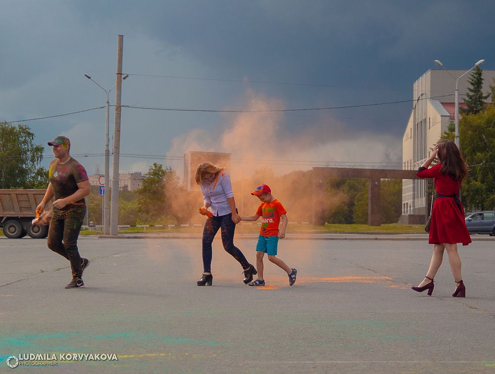 Молодежь в восторгом забрасывала друг друга красками, фотографировалась и радовалась - себе, лету, солнцу и возможности немножко похулиганить.