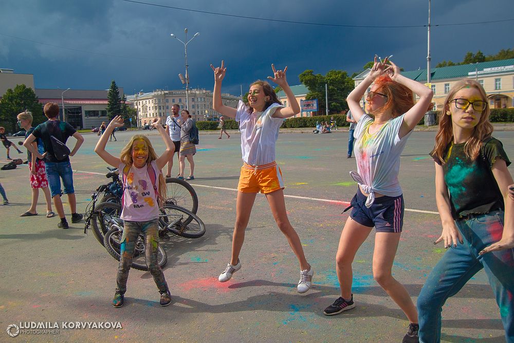 Молодежь в восторгом забрасывала друг друга красками, фотографировалась и радовалась - себе, лету, солнцу и возможности немножко похулиганить.