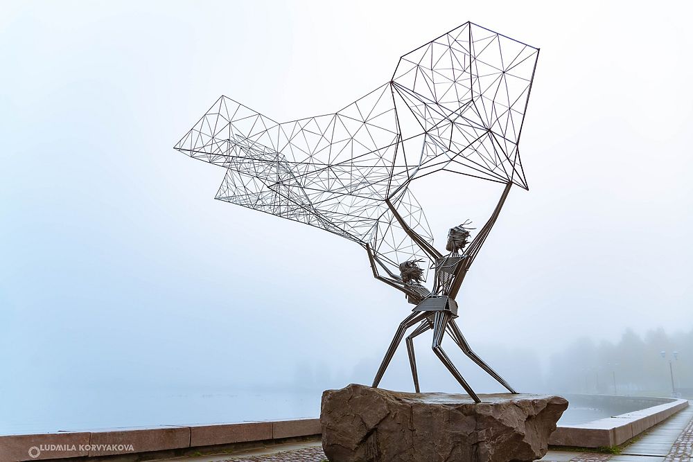 Совсем другое дело – петрозаводская набережная – каменная, застывшая, словно бы уснувшая. Серая спокойная вода, грациозная Ротонда, причудливые скульптуры. Время здесь остановилось, заблудилось в тумане.