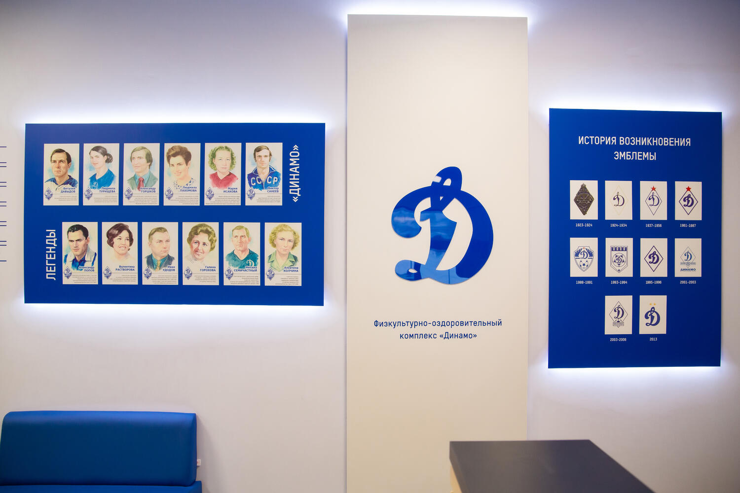 В холле открыта экспозиция, рассказывающая о спортсменах-«динамовцах», которые прославили республику.