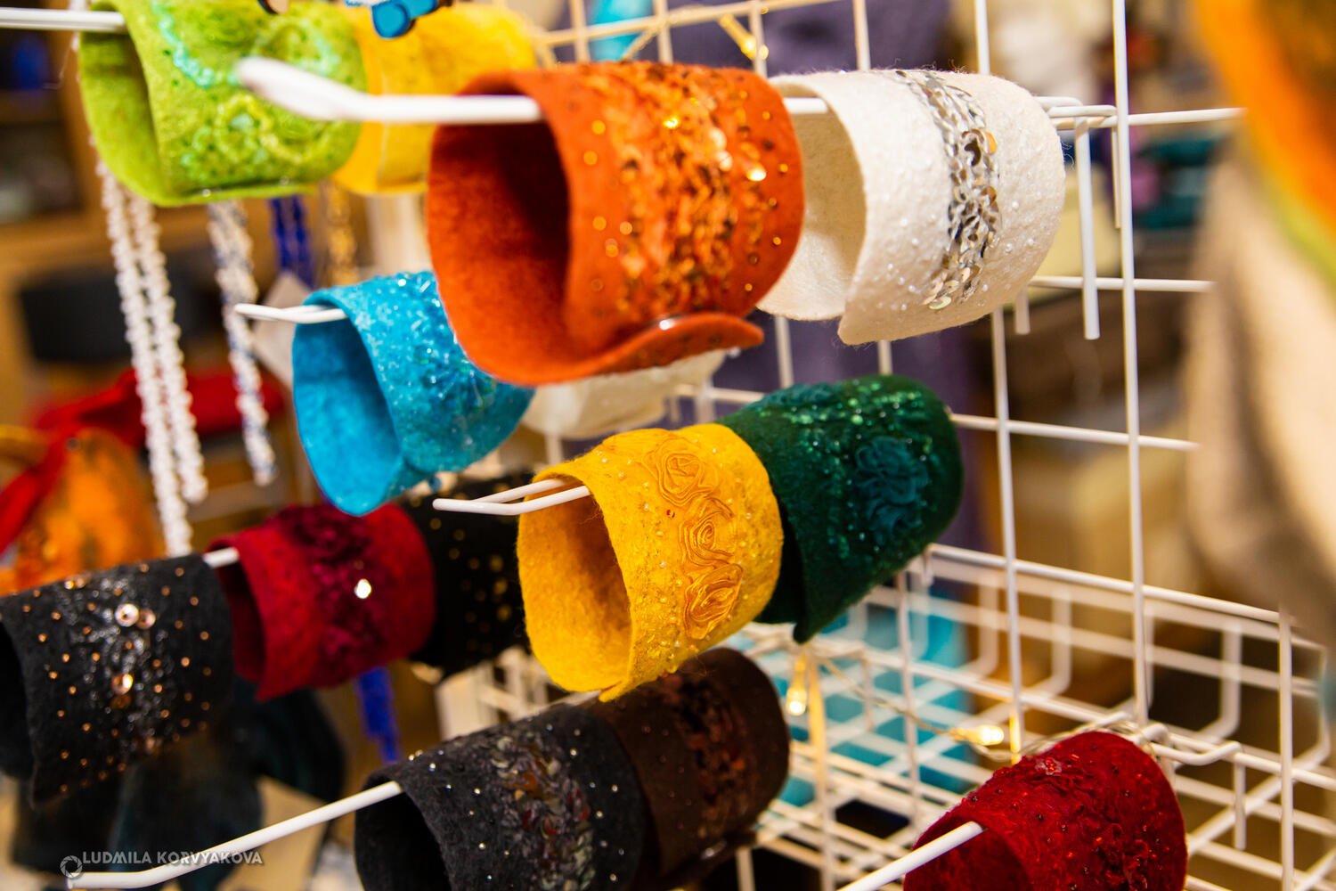 Представлено было так много товаров, что даже глаза разбегались: от новогодних пряников, которыми можно даже елку украсить, до пестрых платьев и футболок с символом Петрозаводска – скульптурой «Рыбаки». Не обошлось без керамики, уютного декора для дома, мебели и даже столовых приборов, изготовленных из аварийных деревьев, что были спилены в парках карельской столицы. Мастера порадовали плетеными зверушками, ловцами снов, букетами из сухоцветов, шапочками-лисичками, украшениями в виде шишек, кожаными ремнями, сумками и кошельками. А по аромату, исходящему от некоторых прилавков, не глядя становилось понятно: тут продаются свечи, мыло и духи.