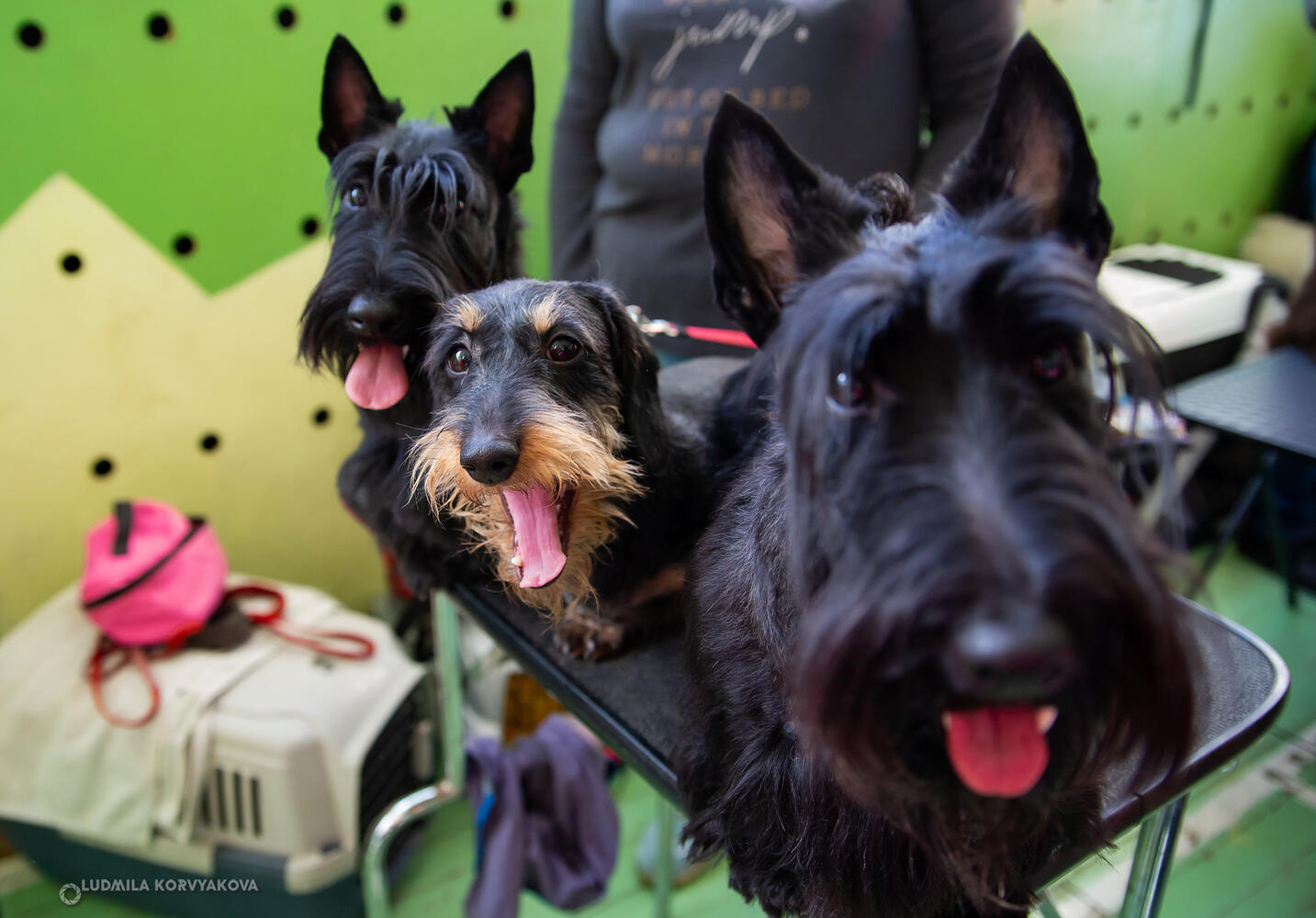 В одном месте собралось огромное количество породистых красавцев: большие и маленькие пудели, сибирские хаски, чау-чау, шпицы, мопсы, пекинесы, бернские зенненхунды, джек рассел терьеры. В общем сложности более шестидесяти пород.