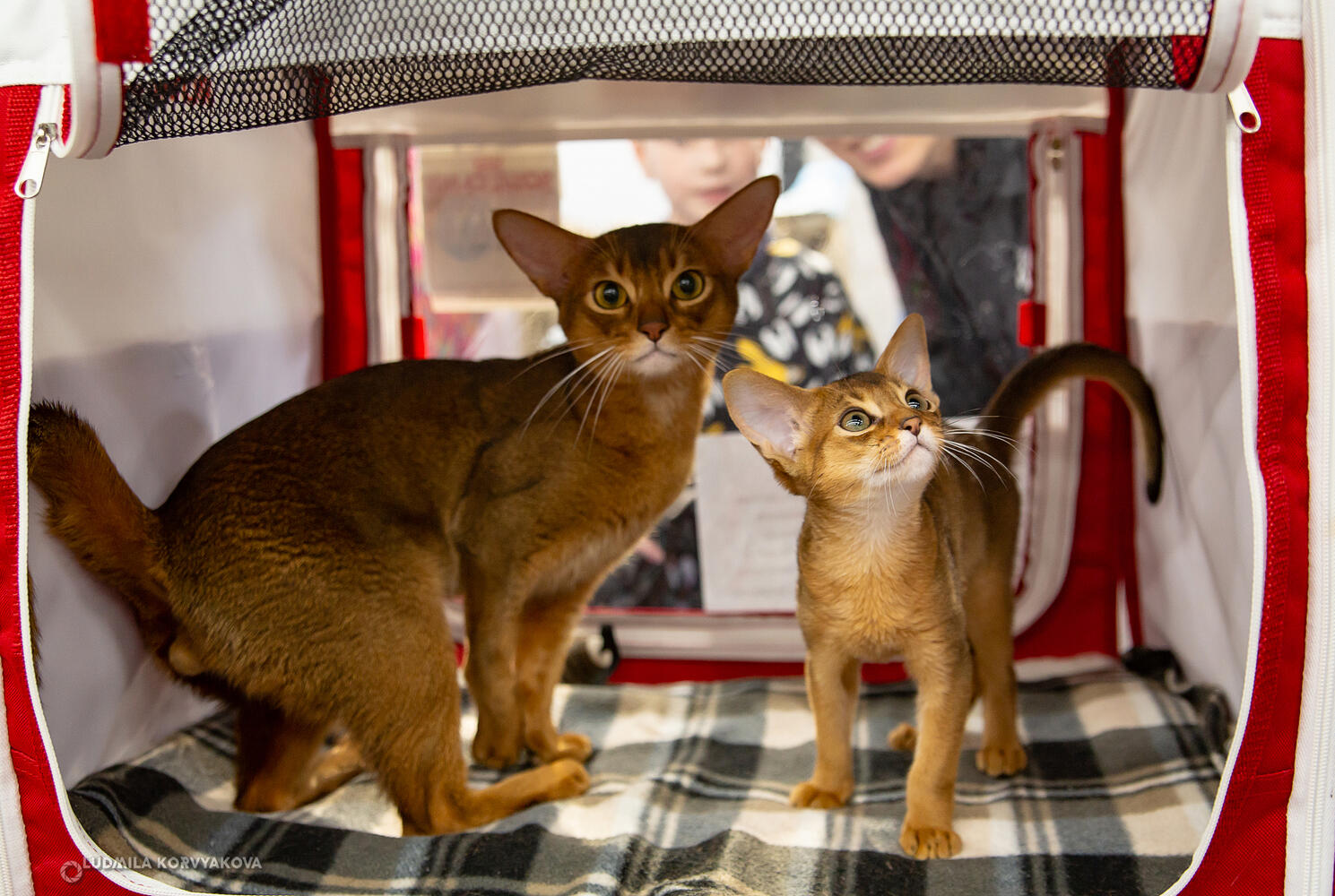 Большой зал офисного центра занял лабиринт из переносок с котами и кошками самых разных пород. В воздухе пахло древесным наполнителем и кошачьим кормом. Ведущая на сцене рассказывала интересные факты о разных кошачьих породах. Так нас встретила Международная выставка кошек «Весенняя рапсодия» (0+).