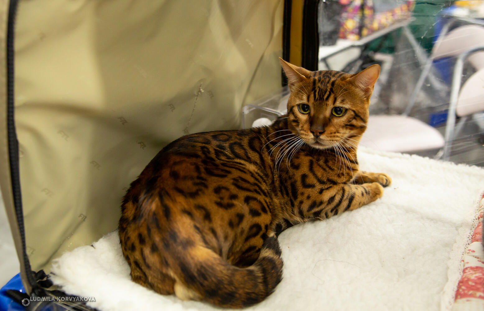 Большой зал офисного центра занял лабиринт из переносок с котами и кошками самых разных пород. В воздухе пахло древесным наполнителем и кошачьим кормом. Ведущая на сцене рассказывала интересные факты о разных кошачьих породах. Так нас встретила Международная выставка кошек «Весенняя рапсодия» (0+).