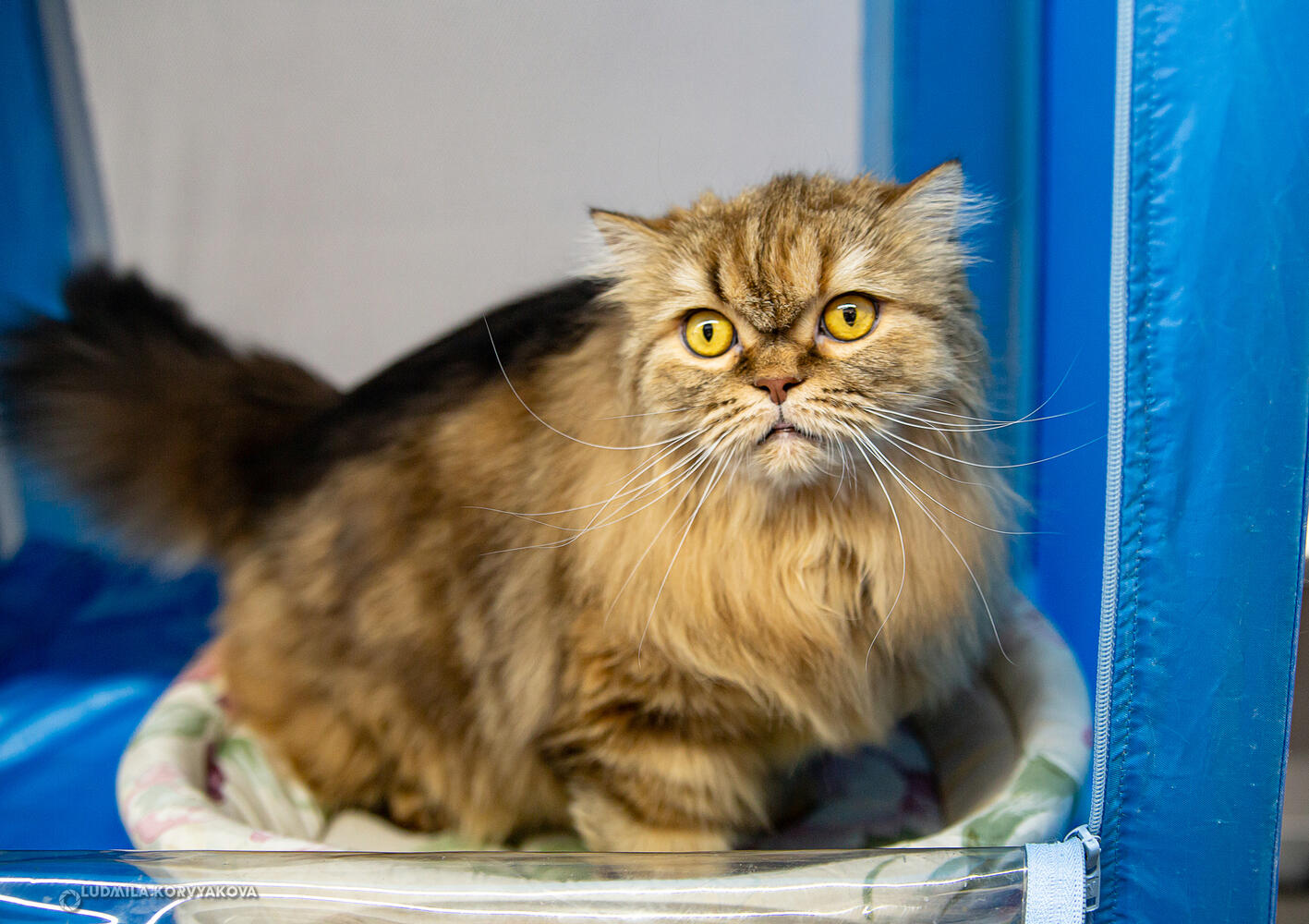 Но чтобы избавить животных от стресса организаторы и заводчики все-таки не дают всем подряд гладить своих питомцев и закрывают шторкой кошек, которым нужно передохнуть от чужого внимания. Большинство четвероногих в перерывах между соревнованиями отдыхают: не спят в основном только котята, пучащие любопытные глазки на людей.