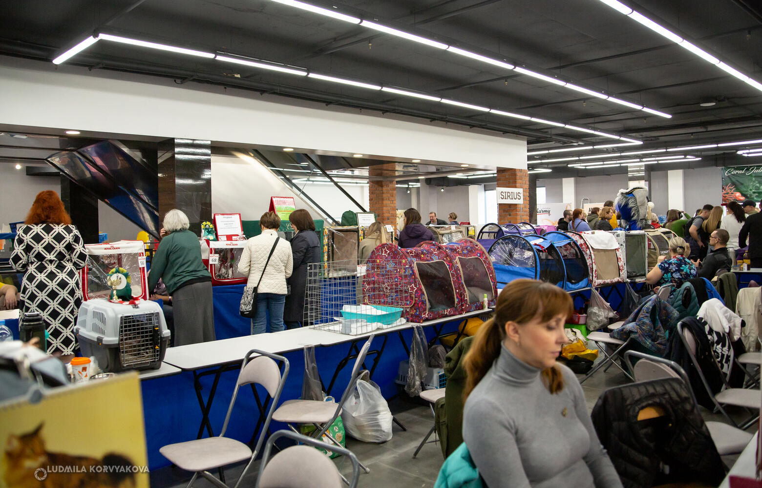 Большой зал офисного центра занял лабиринт из переносок с котами и кошками самых разных пород. В воздухе пахло древесным наполнителем и кошачьим кормом. Ведущая на сцене рассказывала интересные факты о разных кошачьих породах. Так нас встретила Международная выставка кошек «Весенняя рапсодия» (0+).