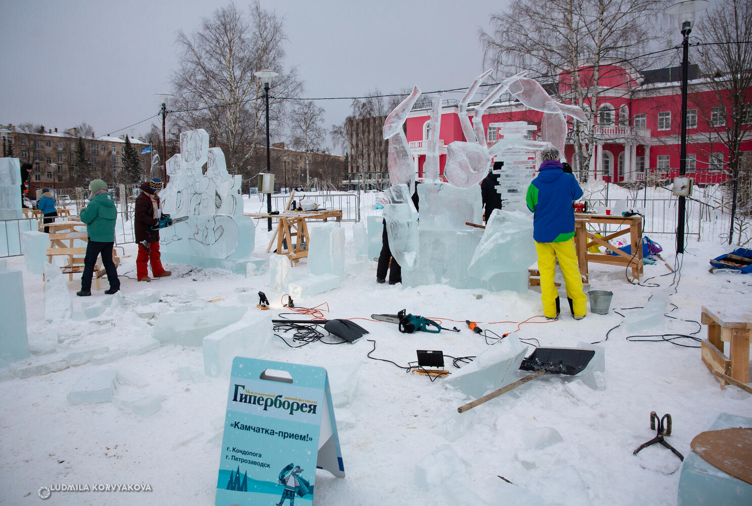 Уже который год в рамках Международного зимнего фестиваля «Гиперборея» (0+) проходит конкурс ледовых и снежных скульптур. В этом году общая тема праздника – символы российских городов. Санкт-Петербургские грифоны, олонецкие гуси, мифический Зилант из Казани уже украсили набережную Петрозаводска. А процесс их создания запечатлел для вас наш фотограф.