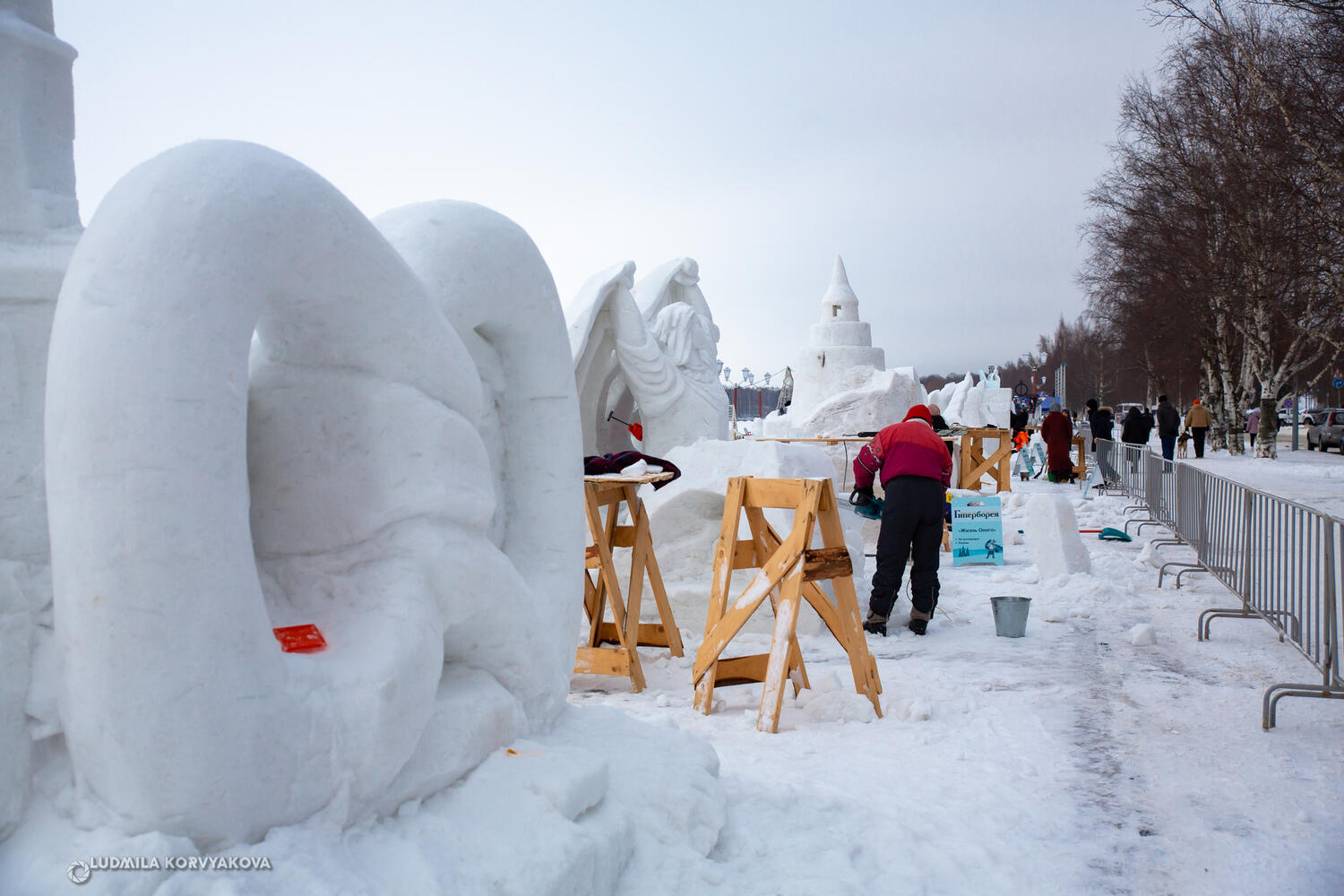 Уже который год в рамках Международного зимнего фестиваля «Гиперборея» (0+) проходит конкурс ледовых и снежных скульптур. В этом году общая тема праздника – символы российских городов. Санкт-Петербургские грифоны, олонецкие гуси, мифический Зилант из Казани уже украсили набережную Петрозаводска. А процесс их создания запечатлел для вас наш фотограф.