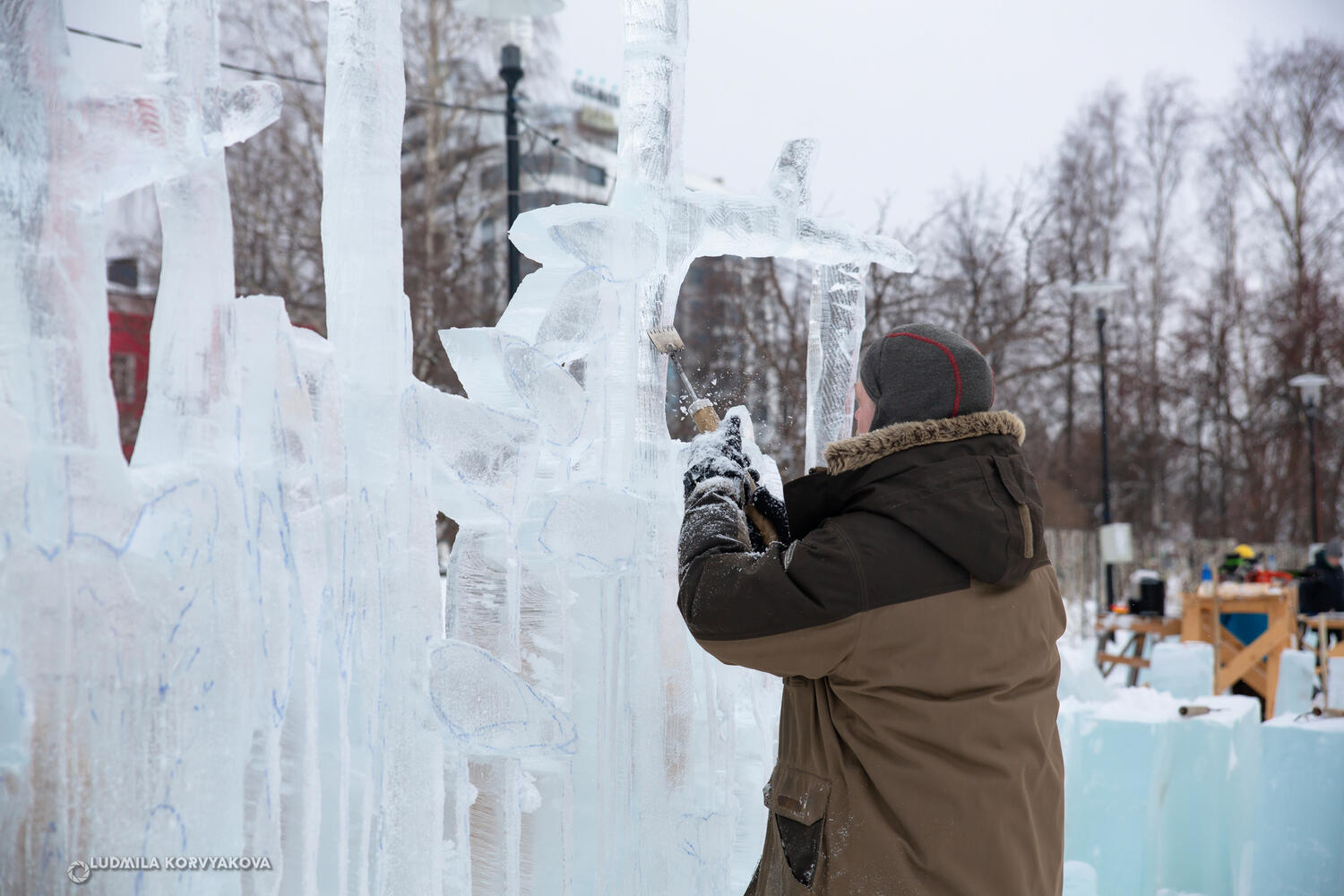 Уже который год в рамках Международного зимнего фестиваля «Гиперборея» (0+) проходит конкурс ледовых и снежных скульптур. В этом году общая тема праздника – символы российских городов. Санкт-Петербургские грифоны, олонецкие гуси, мифический  Зилант из Казани уже украсили набережную Петрозаводска.  А процесс их создания запечатлел для вас наш фотограф.