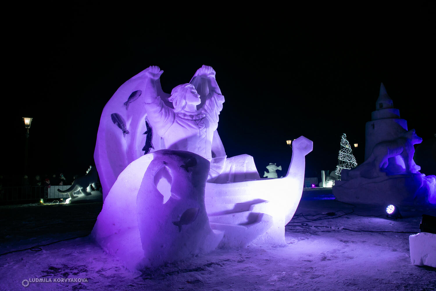 Закончился очередной международный зимний фестиваль «Гиперборея». Но самая яркая его часть – конкурс ледовых и снежных фигур – продолжает радовать петрозаводчан и гостей города. Интригуют даже названия работ: «Щит и меч России», «На Сорокском болоте», «Ловозеро – земля Кольских Саамов». Это и многое другое можно увидеть в ближайшее время на набережной.