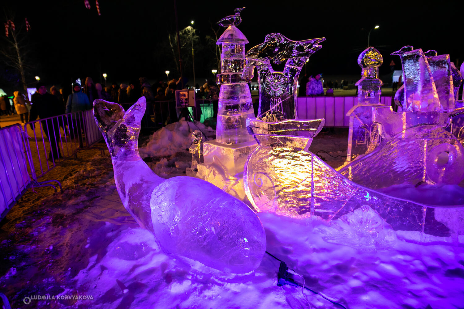 Скульптуры символов российских городов, созданные из льда и снега, ждут своих зрителей на набережной Петрозаводска