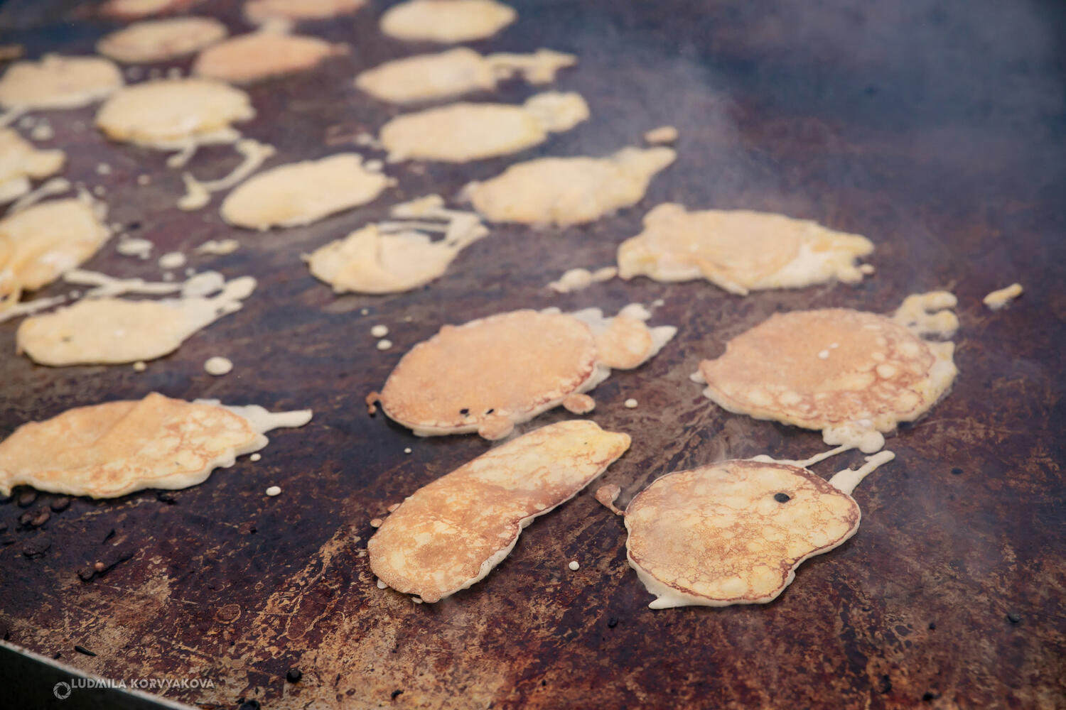 Желающие показать силушку молодецкую – гнули гвозди, поднимали гири, боролись на бревне. Дети играли в гигантское джанго, крестики-нолики, рыбалку. Можно было рассказать стихотворение и получить леденец на палочке. Ну и конечно же – блины: немного неказистые, но очень вкусные – бесплатные или более ровные и красивые, но уже за деньги. Ярмарка, фотозоны с героями русских сказок, хороводы под праздничный концерт – это и многое другое в нашем фоторепортаже.